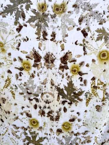 Eco printing is a natural dye process that takes the beauty of botanicals and transfers them to fabric using the naturally occurring pigments, tannins, and acids using heat and steam. It is a slow process, but well worth it. Each bundle is unique and unpredictable resulting in a one of a kind beauty that fast fashion cannot replicate.